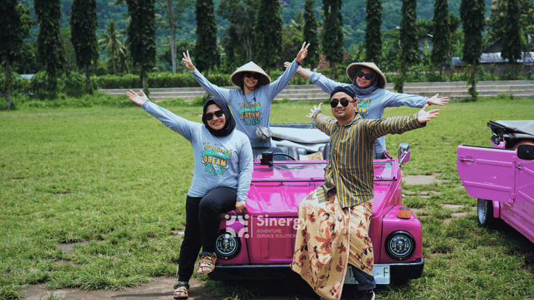 Wisata VW Safari Borobudur 2026 bersama Sinergy Adventure menawarkan pengalaman vw wisata Borobudur yang unik dengan mobil klasik VW Cabrio, menyusuri desa wisata, panorama alam, dan kawasan heritage Borobudur–Magelang. Paket vw safari Borobudur ini dirancang fleksibel dengan pilihan durasi trip, tema wisata edukasi maupun destinasi instagramable, dilengkapi spot foto menarik serta pelayanan driver berpengalaman, menjadikannya pilihan ideal untuk wisata keluarga, komunitas, gathering, hingga company outing.